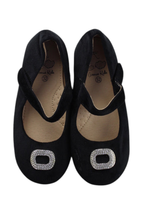 These elegant Avenue Kids Occasion flats, designed for tweens in size EU32, feature a chic black suede finish with a sparkling buckle detail, perfect for adding a touch of sophistication to any special event, all while championing sustainable fashion.