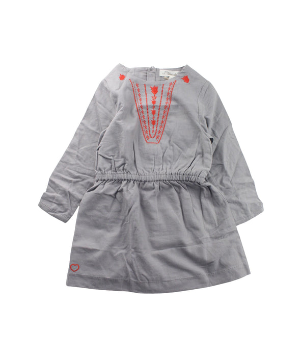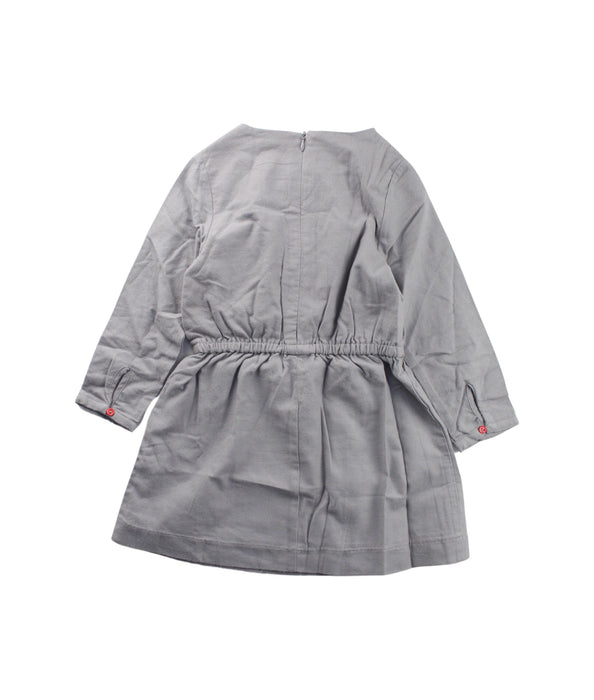 This Château de Sable long sleeve dress in size 4 years is perfect for your little toddler's fall and winter wardrobe. Featuring charming red embroidery on a soft grey fabric, it combines elegance with comfort, promoting circular fashion for conscious parents.