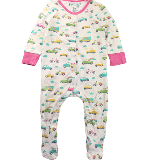 This adorable Frugi onesie for 12-18 months offers all-season comfort with charming vehicle prints and cozy pink cuffs, perfect for your baby boy's bedtime. Made from preloved materials, it supports sustainable fashion and circular consumption.