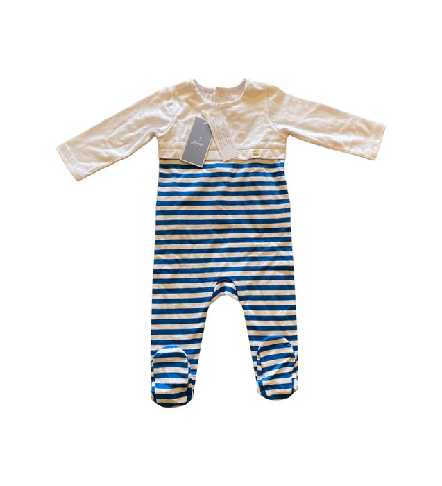 Crafted by Jacadi, this long-sleeve bodysuit for baby boys in size 3-6 months features a charming nautical stripe design, perfect for any season while supporting sustainable and circular fashion.