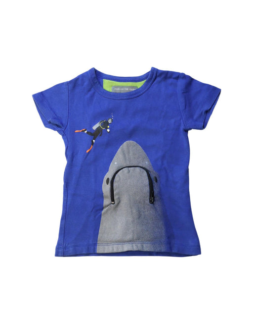 Make a splash in sustainable fashion with this Milk on the Rocks short sleeve t-shirt, designed for toddler boys aged 4 years. Featuring an eye-catching animal print with a diver and shark motif, this all-season top offers playful style while promoting circular consumption.