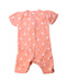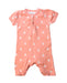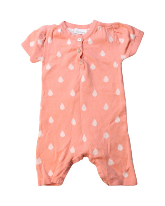 This adorable Noukie's short sleeve romper, perfect for babies aged 0-3 months, features a sweet raindrop pattern in a soft peach hue. Ideal for all seasons, this preloved piece combines style and sustainability.